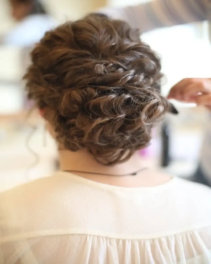 Mist with water and curl cream to revive. Diffuse roots upside down for lift.